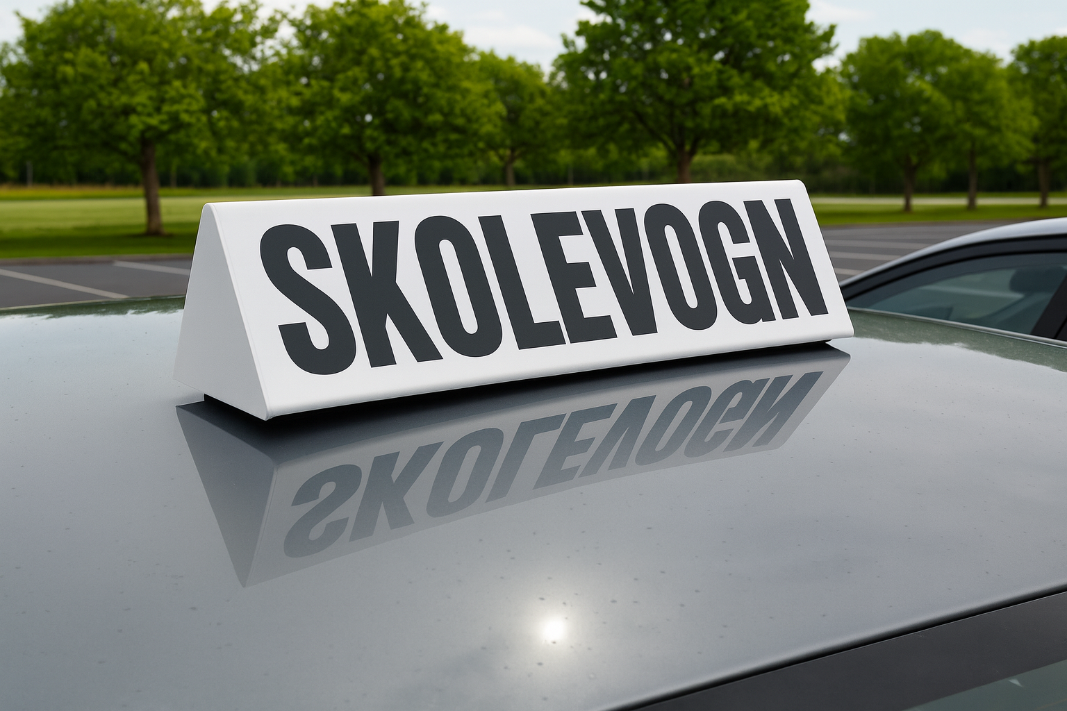 Dette tag-skilt er designet specielt til køreskoler og godkendt til brug på skolevogne. Skiltet er udført i en praktisk tobleroneform, som sikrer høj synlighed.