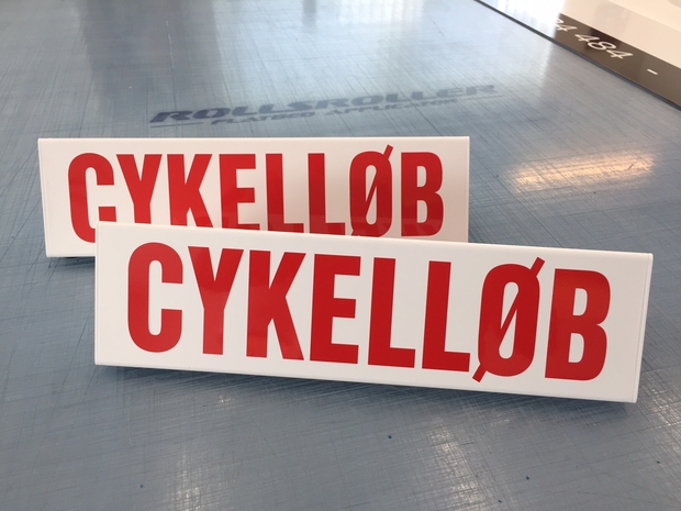 Skiltets størrelse er 40 × 11 × 10 cm, hvilket giver det tydelig markering under køreundervisning.